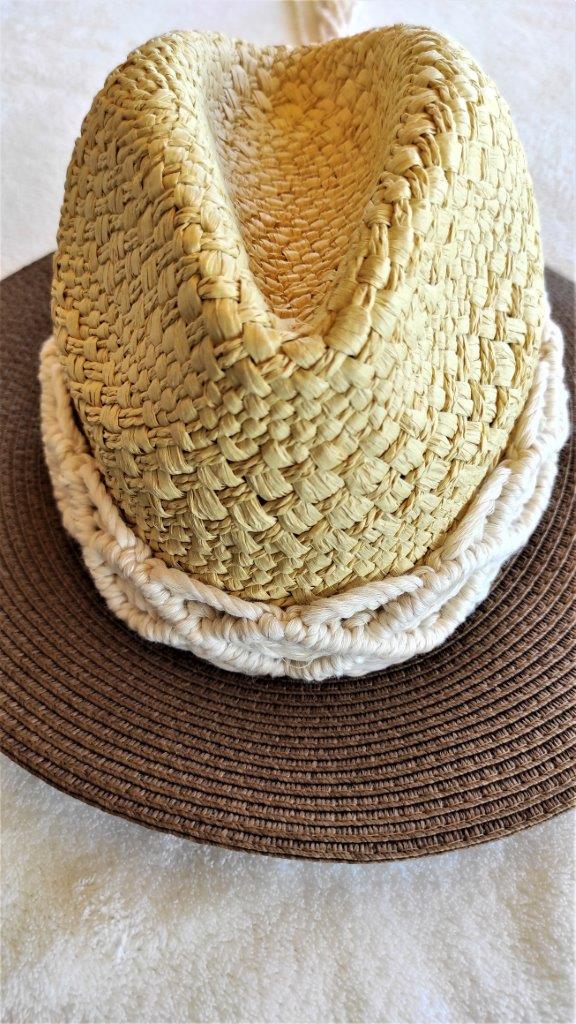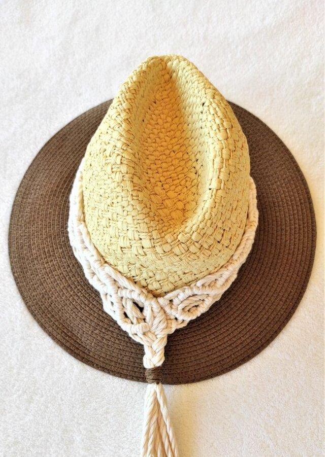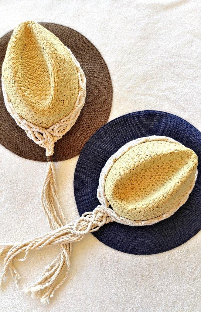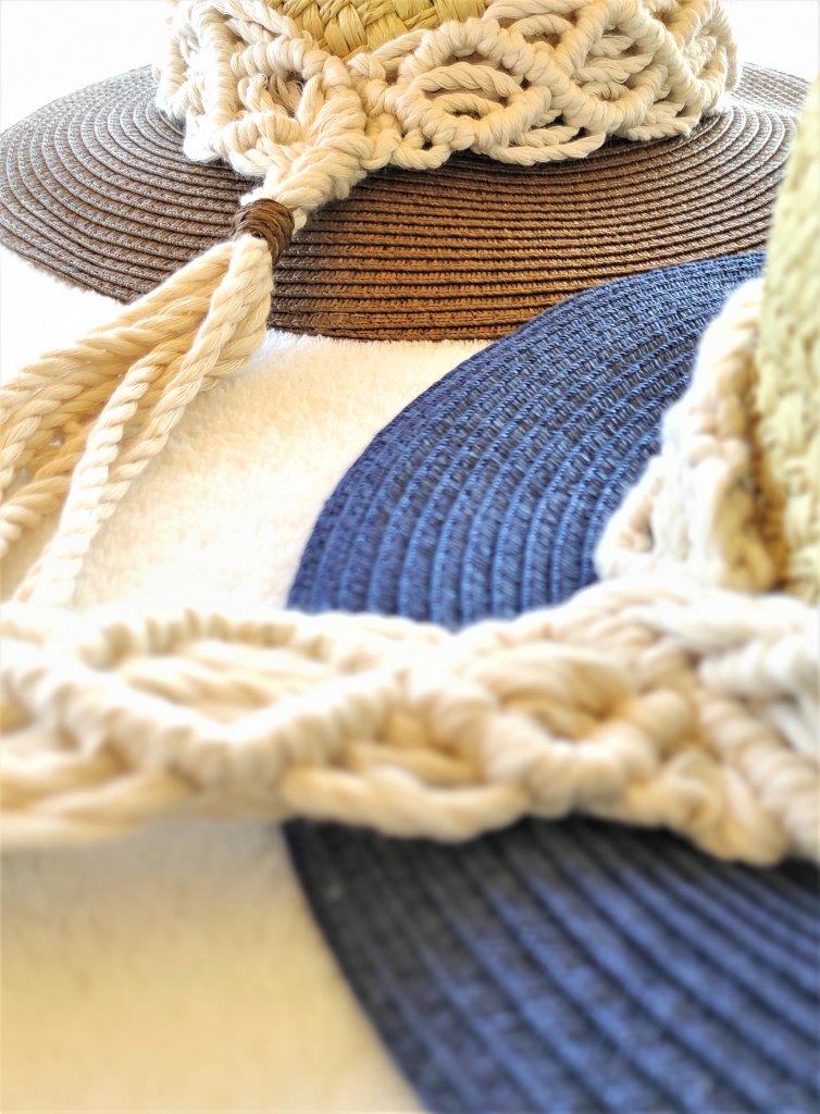 Mοναδικό ψάθινο καπέλο με λεπτομέρεια πλέξης μακραμέ από 100% ανακυκλωμένο  βαμβακερό κορδόνι. Ιδανική επιλογή για όσους λατρεύουν το boho style και θέλουν να ξεχωρίσουν με τις εμφανίσεις τους το καλοκαίρι .