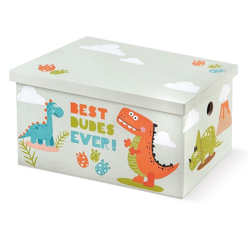 - Ξύλινη natural κασέλα με καπάκι, συσκευασία βάπτισης ζωγραφισμένη στο χέρι με θέμα τους δεινόσαυρους πάνω σε φόντο πράσινο-λαδί και σε αποχρώσεις πορτοκαλί-πράσινες-τιρκουάζ.Το καπάκι διακοσμείται επίσης με πατουσάκια δεινοσαύρων σε αποχρώσεις πορτοκαλί-τιρκουάζ και πράσινες και με ζωγραφιστά λευκά συννεφάκια. Διάστ.:48χ34χ27cm