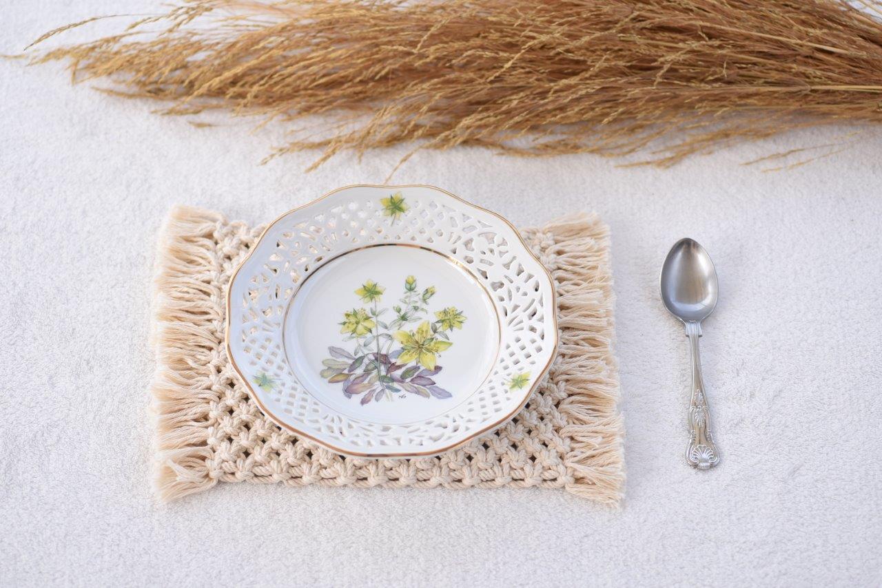 Μικρό χειροποίητο  μοντέρνο macrame σουπλά , ιδανικό να διακοσμήσει ξεχωριστά το τραπέζι σας και να χαρίσει μια vintage διάθεση στο χώρο. Πρωτότυπη επιλογή για όσους λατρεύουν το boho,vintage,retro style και θέλουν να χαρίσουν μια bohem πινελιά στο χώρο τους. Μπορείτε να το συνδυάσετε με τα αντίστοιχα macrame σουβέρ και να δώσει μια ολοκληρωμένη boho αίσθηση. Πρωτότυπη πρόταση για να χαρίσετε ένα ξεχωριστό  χειροποίητο δώρο.