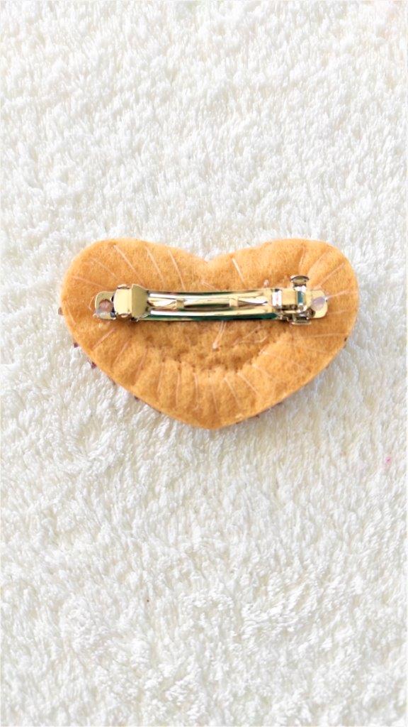 Χειροποίητο κοκαλάκι μαλλιών με φιόγκο καρδιά απο τσόχα, επενδυμένο με κρύσταλλα και κοντερίες .