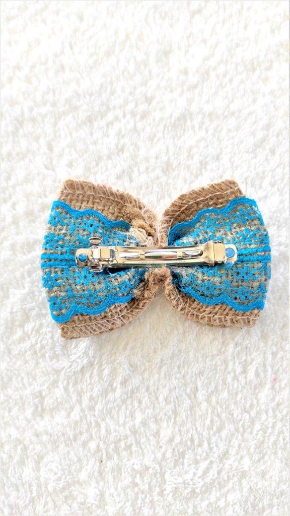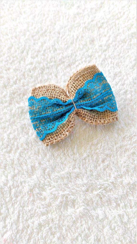 Χειροποίητο  κοκαλάκι μαλλιών  με φιόγκο  απο λινάτσα και δαντέλα.