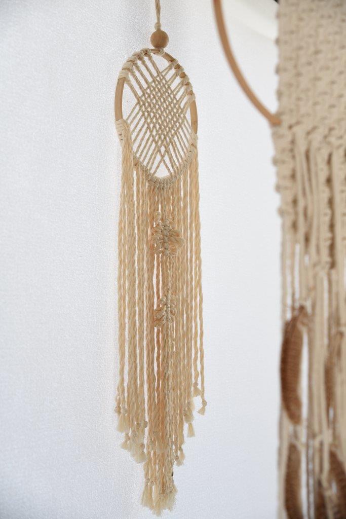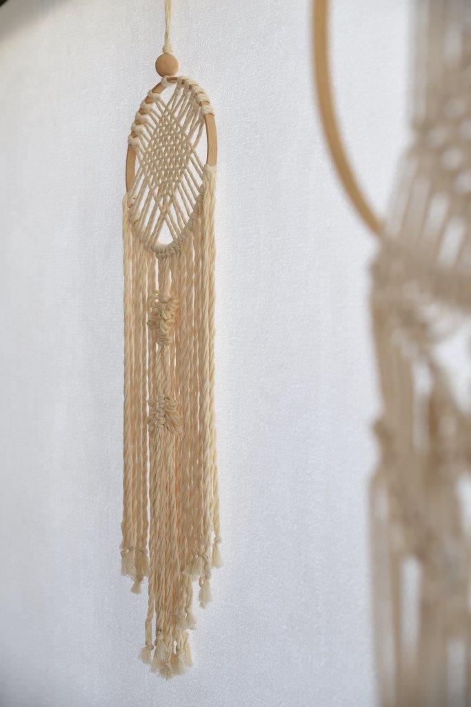 Μοναδική χειροποίητη μοντέρνα macramé ονειροπαγίδα από 100% ανακυκλωμένο βαμβακερό κορδόνι και baboo τελάρο κεντήματος. Μια πρωτότυπη επιλογή για ένα ξεχωριστό  χειροποίητο δώρο. Μπορεί να διακοσμήσει  τόσο το χώρο του σαλονιού σας όσο και της κρεβατοκάμαρας  σας και να χαρίσει μια boho διάθεση στο χώρο.
