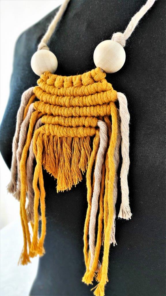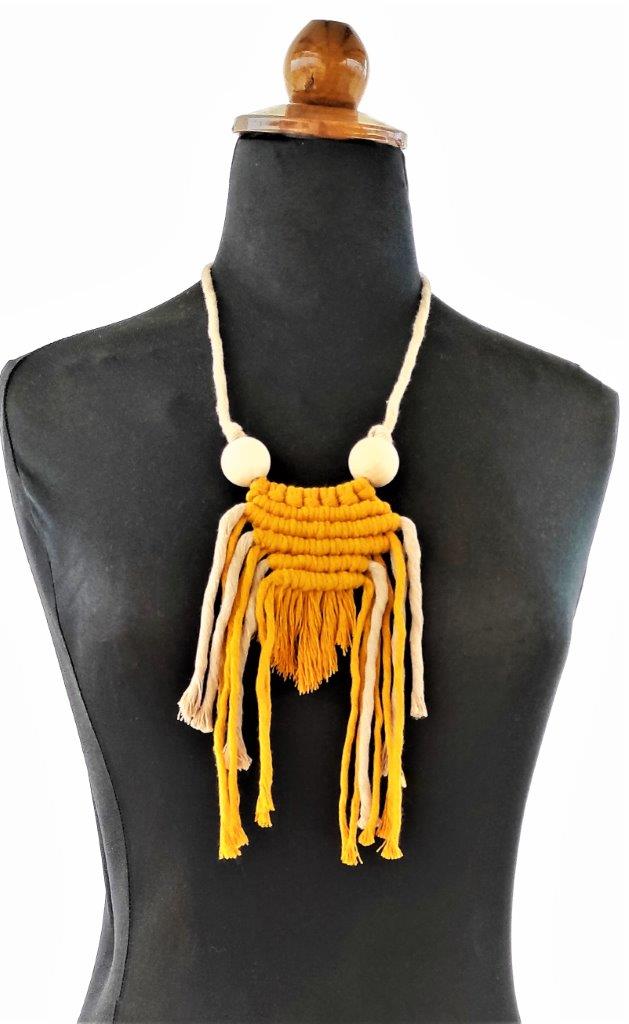 Ethnic  μακρύ μακραμέ κολιέ με ανακυκλωμένο βαμβακερό σχοινί  σε γήινες αποχρώσεις . Ιδανική επιλογή για όσους λατρεύουν το boho και ethnic style.Συνοδεύεται από προσεγμένο χάρτινο κραφτ κουτί συσκευασίας φιλικό προς το περιβάλλον.