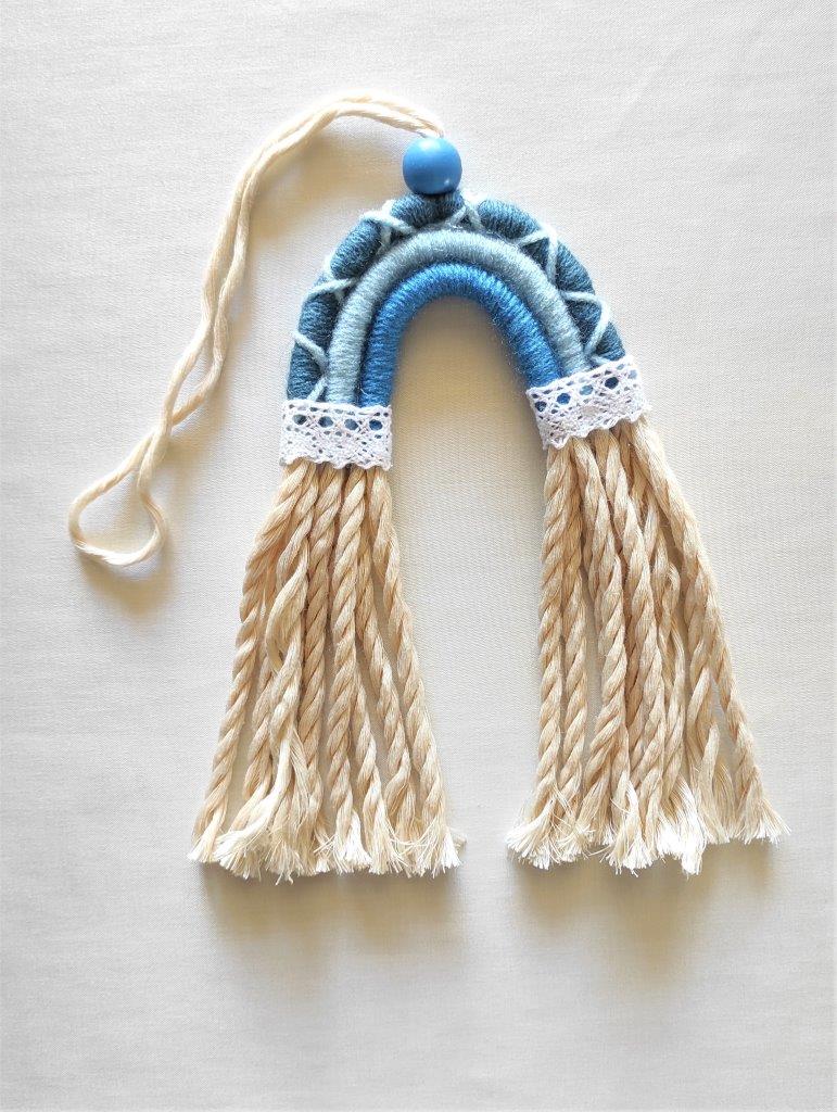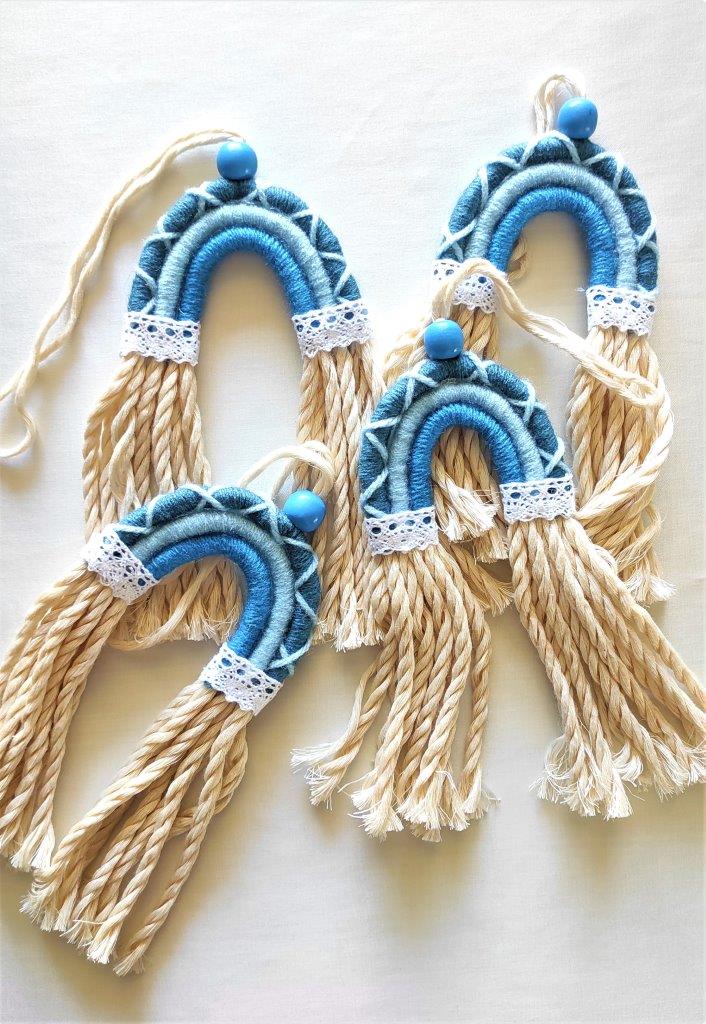 Μοναδικό χειροποίητο μοντέρνο macramé  τοίχου μίνι ουράνιο τόξο. Ιδανική επιλογή τόσο για μπομπονιέρα βάπτισης όσο και για αναμνηστικό γεννήσεως. Πρωτότυπη χειροποίητη ξεχωριστή δημιουργία που μπορεί να διακοσμήσει χαρούμενα τον τοίχο του παιδικού δωμάτιου και όχι μόνο. Μια ιδιαίτερη πρόταση για οικονομικό χειροποίητο παιδικό δώρο. Διατίθεται σε διάφορες αποχρώσεις. Ελάχιστη παραγγελία  25  τεμάχια.  Παρακαλώ επικοινωνήστε μαζί μας για περισσότερες πληροφορίες.