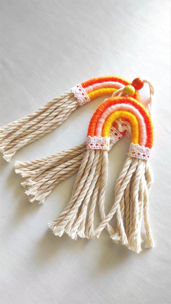 Μοναδικό χειροποίητο μοντέρνο macramé  τοίχου μίνι ουράνιο τόξο. Ιδανική επιλογή τόσο για μπομπονιέρα βάπτισης όσο και για αναμνηστικό γεννήσεως. Πρωτότυπη χειροποίητη ξεχωριστή δημιουργία που μπορεί να διακοσμήσει χαρούμενα τον τοίχο του παιδικού δωμάτιου και όχι μόνο. Μια ιδιαίτερη πρόταση για οικονομικό χειροποίητο παιδικό δώρο. Διατίθεται σε διάφορες αποχρώσεις. Ελάχιστη παραγγελία  25  τεμάχια.  Παρακαλώ επικοινωνήστε μαζί μας για περισσότερες πληροφορίες.