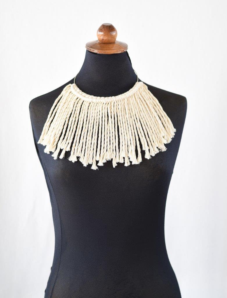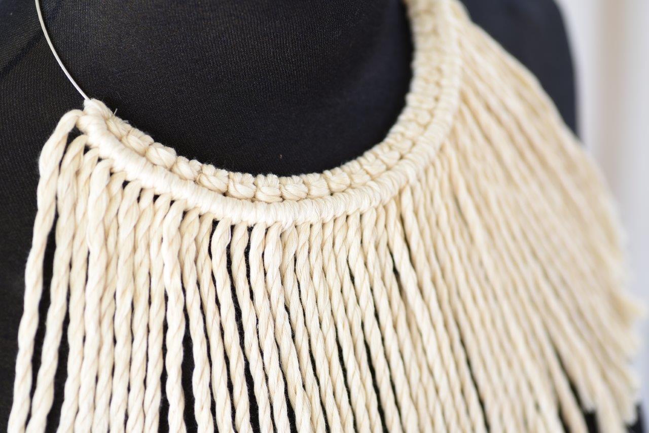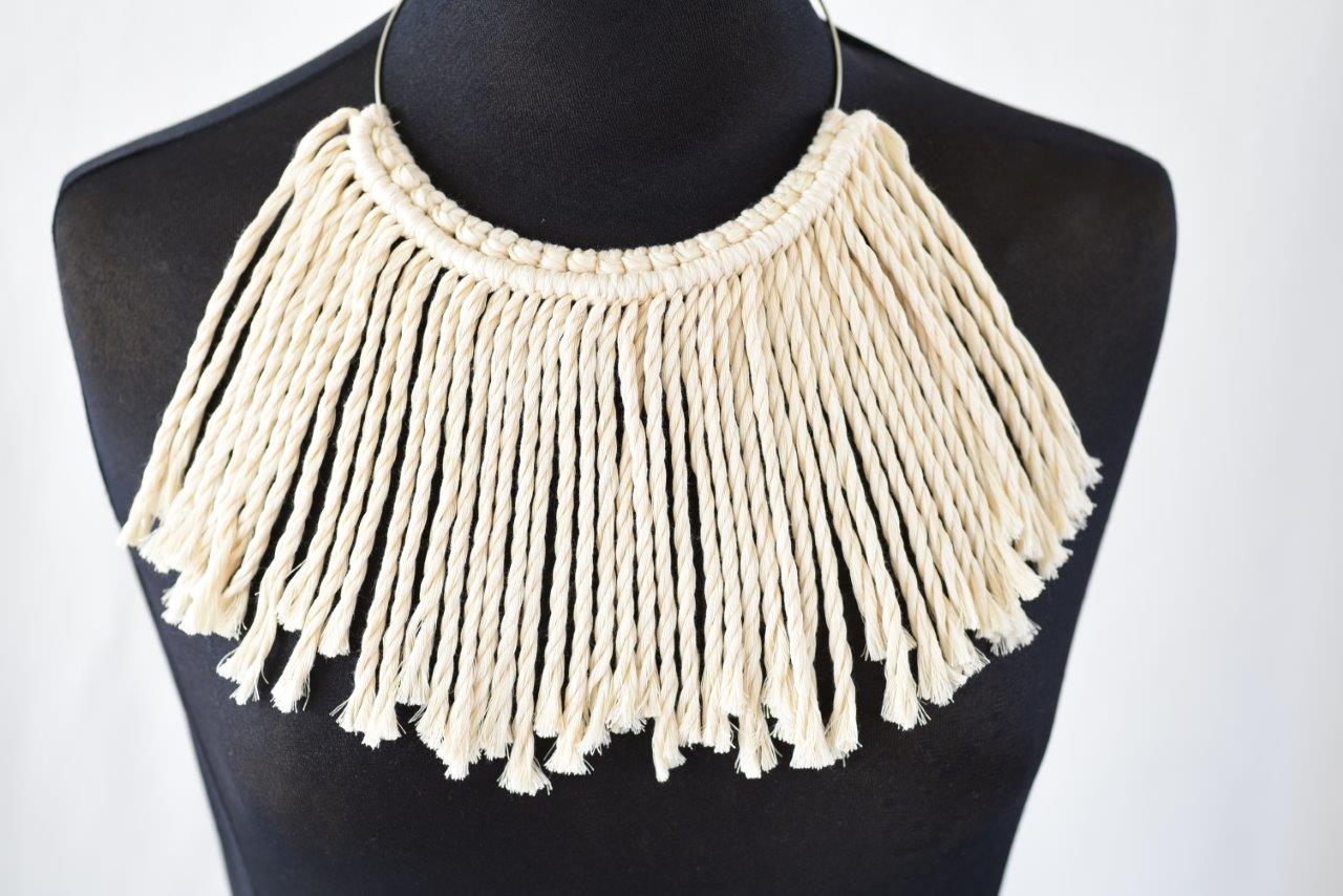 Ethnic μακραμέ κολιέ με ανακυκλωμένο βαμβακερό σχοινί για μοναδικές εντυπωσιακές εμφανίσεις. Ιδανική επιλογή για όσους λατρεύουν το boho και ethnic style.Συνοδεύεται από προσεγμένο χάρτινο κραφτ κουτί συσκευασίας φιλικό προς το περιβάλλον.