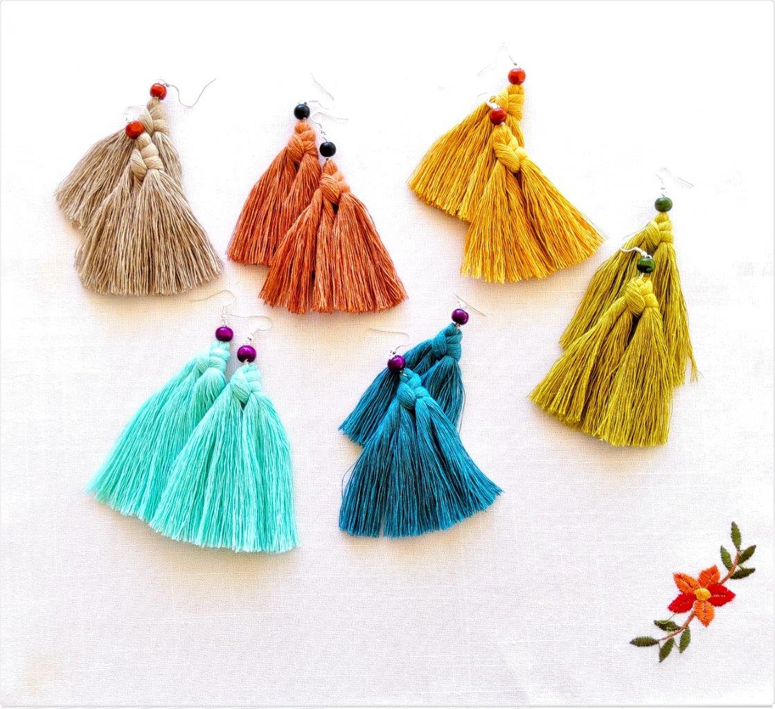 Μοναδικά χειροποίητα μοντέρνα macrame σκουλαρίκια πλεγμένα με 100% ανακυκλωμένο  βαμβακερό κορδόνι σε χρώμα μουσταρδί ,πάνω σε ορειχάλκινο γάντζο. Ιδανική επιλογή για όσους λατρεύουν το boho style.Συνοδεύεται από προσεγμένο χάρτινο κραφτ κουτί συσκευασίας φιλικό προς το περιβάλλον.