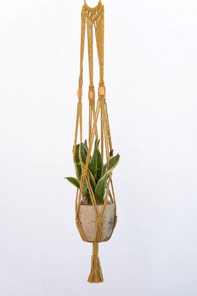 Μοναδική χειροποίητη μοντέρνα macrame κρεμαστή βάση για γλάστρα, πλεγμένη από 100% ανακυκλωμένο βαμβακερό κορδόνι πάνω σε μεταλλικό επίχρυσο κρίκο. Πρωτότυπη πρόταση διακόσμησης τόσο για εξωτερικούς όσο και εσωτερικούς χώρους. Μπορείτε να διακοσμήσετε το σαλόνι σας, το μπάνιο σας ακόμα και το γραφείο σας τοποθετώντας εντός ένα φυτό εσωτερικού χώρου ή μια γυάλα με κεριά. Ιδανική επιλογή για όσους λατρεύουν την boho,ethnic και vintage διακόσμηση και θέλουν να χρίσουν μια bohem πινελιά στο χώρο τους. Κατάλληλο τόσο για εσωτερικό  όσο και για εξωτερικό χώρο.