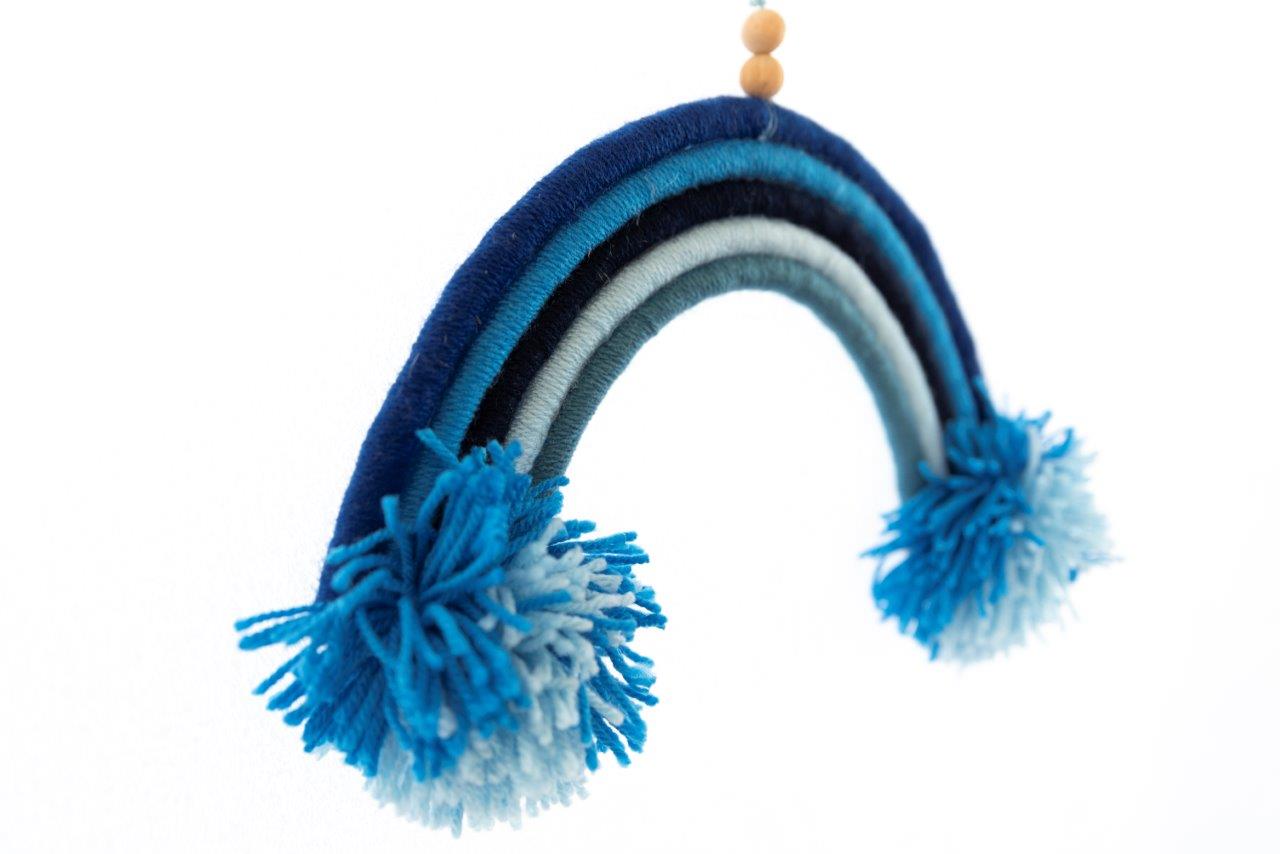 Μοναδικό χειροποίητο μοντέρνο macramé  τοίχου μικρό ουράνιο τόξο. Πρωτότυπη χειροποίητη ξεχωριστή δημιουργία που μπορεί να διακοσμήσει χαρούμενα τον τοίχο του παιδικού δωματίου και όχι μόνο. Μια ιδιαίτερη πρόταση για παιδικό  χειροποίητο δώρο. Διατίθεται σε διάφορες αποχρώσεις.