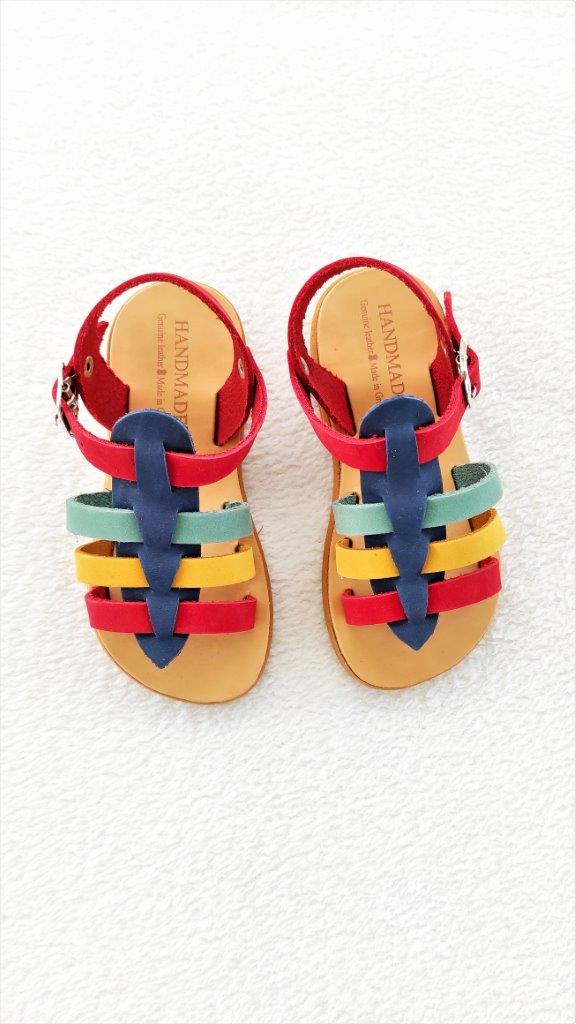 Παιδικά πολύχρωμα χειροποίητα δερμάτινα σανδάλια μονομάχου ελληνικής κατασκευής . Ιδανική επιλογή τόσο για αγόρι όσο και για κορίτσι. Πρωτότυπο χειροποίητο σανδάλι για τους μικρούς μας ήρωες και μικρές ηρωίδες .