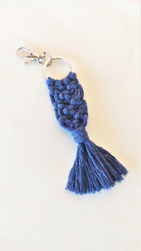 Μοναδικό χειροποίητο  μοντέρνο macramé μπρελόκ ,πλεγμένο από 100% ανακυκλωμένο  μπλέ βαμβακερό κορδόνι πάνω σε ασημένιο κρίκο. Μια πρωτότυπη επιλογή για ένα ξεχωριστό χειροποίητο δώρο που θα χαρίσει μια boho ,ethnic και boem διάθεση.