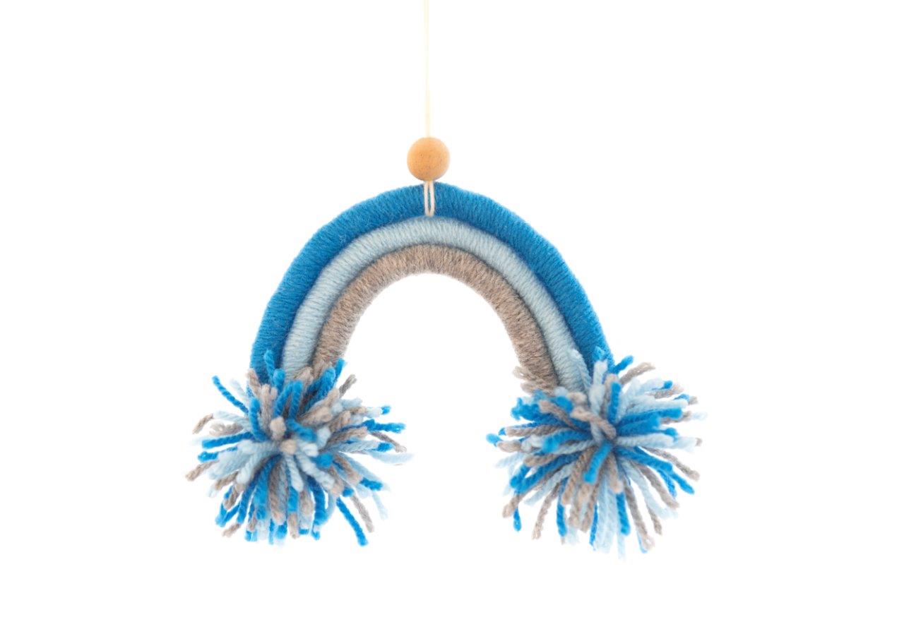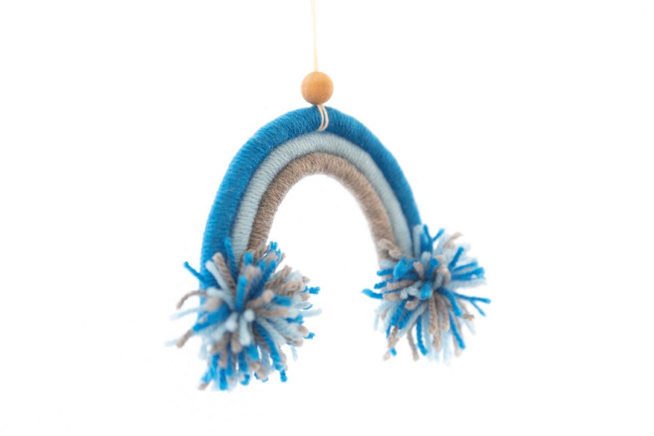 Μοναδικό χειροποίητο μοντέρνο macramé  τοίχου μικρό ουράνιο τόξο. Πρωτότυπη χειροποίητη ξεχωριστή δημιουργία που μπορεί να διακοσμήσει χαρούμενα τον τοίχο του παιδικού δωματίου και όχι μόνο. Μια ιδιαίτερη πρόταση για παιδικό  χειροποίητο δώρο. Διατίθεται σε διάφορες αποχρώσεις.