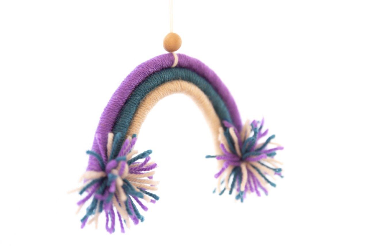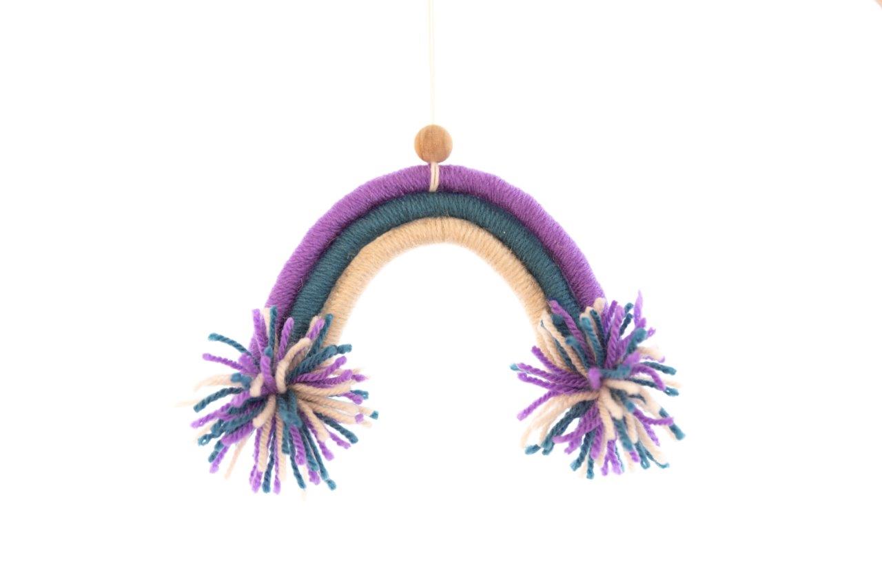 Μοναδικό χειροποίητο μοντέρνο macramé  τοίχου μικρό ουράνιο τόξο. Πρωτότυπη χειροποίητη ξεχωριστή δημιουργία που μπορεί να διακοσμήσει χαρούμενα τον τοίχο του παιδικού δωματίου και όχι μόνο. Μια ιδιαίτερη πρόταση για παιδικό  χειροποίητο δώρο. Διατίθεται σε διάφορες αποχρώσεις.
