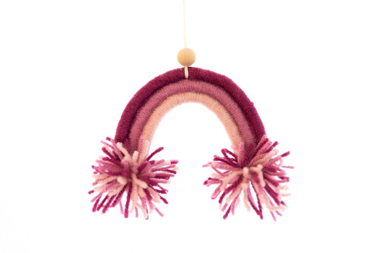 Μοναδικό χειροποίητο μοντέρνο macramé  τοίχου μικρό ουράνιο τόξο. Πρωτότυπη χειροποίητη ξεχωριστή δημιουργία που μπορεί να διακοσμήσει χαρούμενα τον τοίχο του παιδικού δωματίου και όχι μόνο. Μια ιδιαίτερη πρόταση για παιδικό  χειροποίητο δώρο. Διατίθεται σε διάφορες αποχρώσεις.