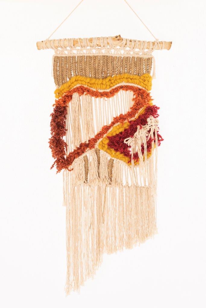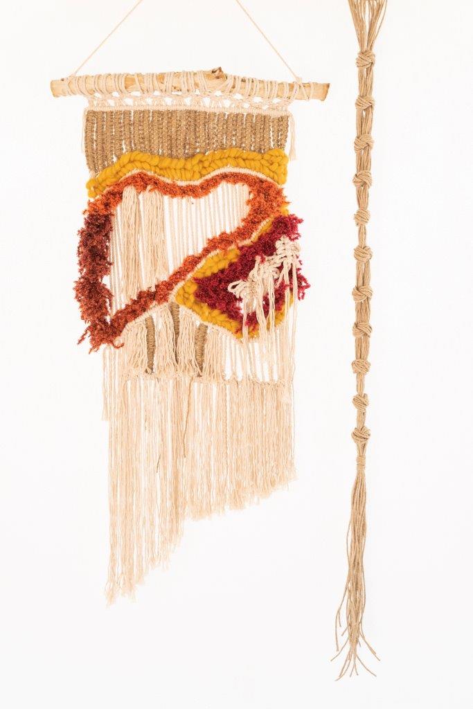 Μοναδικό χειροποίητο μοντέρνο  macramé  κρεμαστό τοίχου, πλεγμένο από 100% ανακυκλωμένο βαμβακερό κορδόνι ,μαλλί και γιούτα πάνω σε φυσικό ξύλο .Μια πρωτότυπη επιλογή για ένα ξεχωριστό χειροποίητο δώρο. Ιδανική επιλογή για όσους λατρεύουν την boho,ethnic και vintage διακόσμηση και θέλουν να χαρίσουν μια bohem πινελιά στο χώρο τους. Κατάλληλο τόσο για εσωτερικό  όσο και για εξωτερικό χώρο.