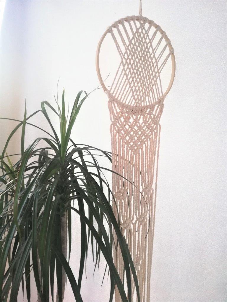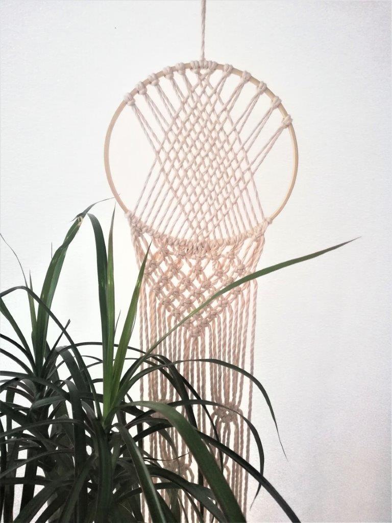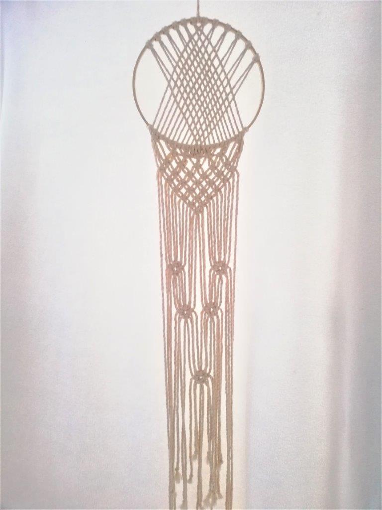 Μοναδική χειροποίητη μοντέρνα macramé ονειροπαγίδα από 100% ανακυκλωμένο βαμβακερό κορδόνι και baboo τελάρο κεντήματος. Μια πρωτότυπη επιλογή για ένα ξεχωριστό  χειροποίητο δώρο. Μπορεί να διακοσμήσει  τόσο το χώρο του σαλονιού σας όσο και της κρεβατοκάμαρας  σας και να χαρίσει μια boho διάθεση στο χώρο. Ιδανική πρόταση για χειροποίητο δώρο.